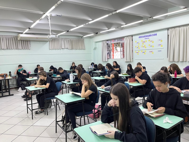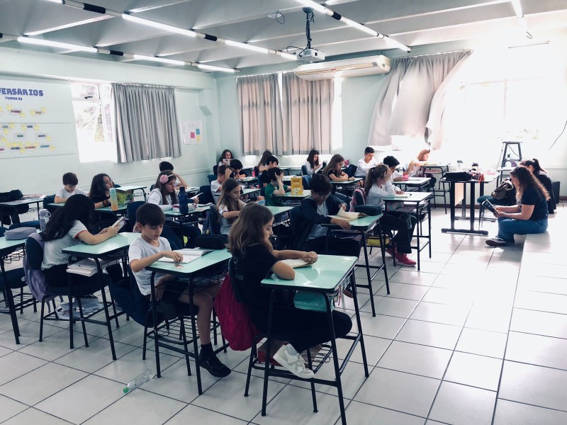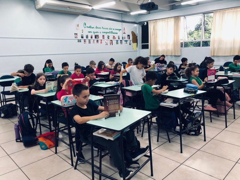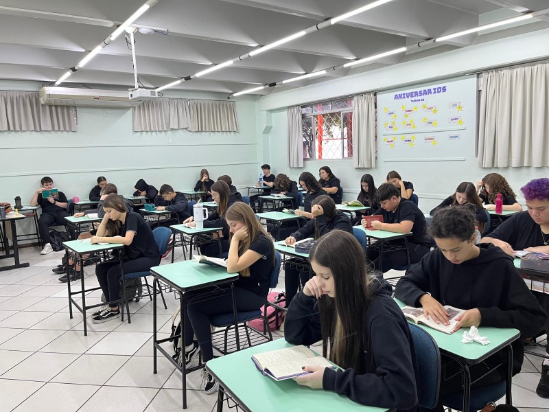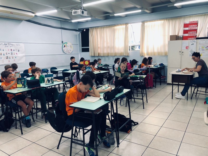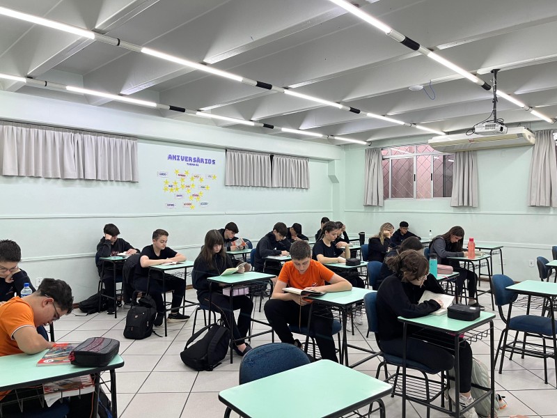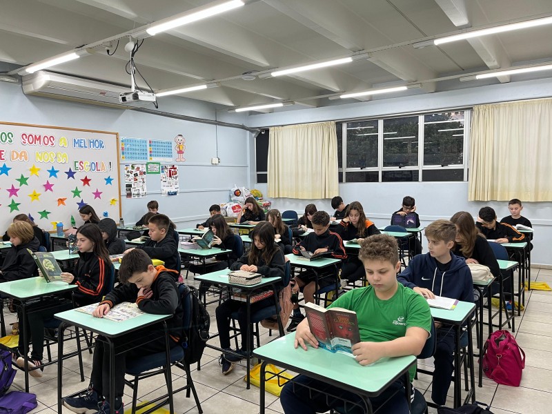 A Parada Literária terá as seguintes datas no ano 05/05, 03/06, 02/07, 07/08, 05/09, 06/10, 04/11, 03/12, a 3ª fase do XXIV Projeto da Leitura: O livro é muito mais que palavras! Será 15min em que todos da escola (alunos, professores, funcionários e direção) dedicarão um momento à leitura. Um momento de silêncio, conexão com os livros e cultivo do prazer de ler. Dia 05.05 houve primeiro momento. As fotografias a seguir revelam todos os níveis de ensino envolvidos com a leitura, em espaços diferenciados da escola.