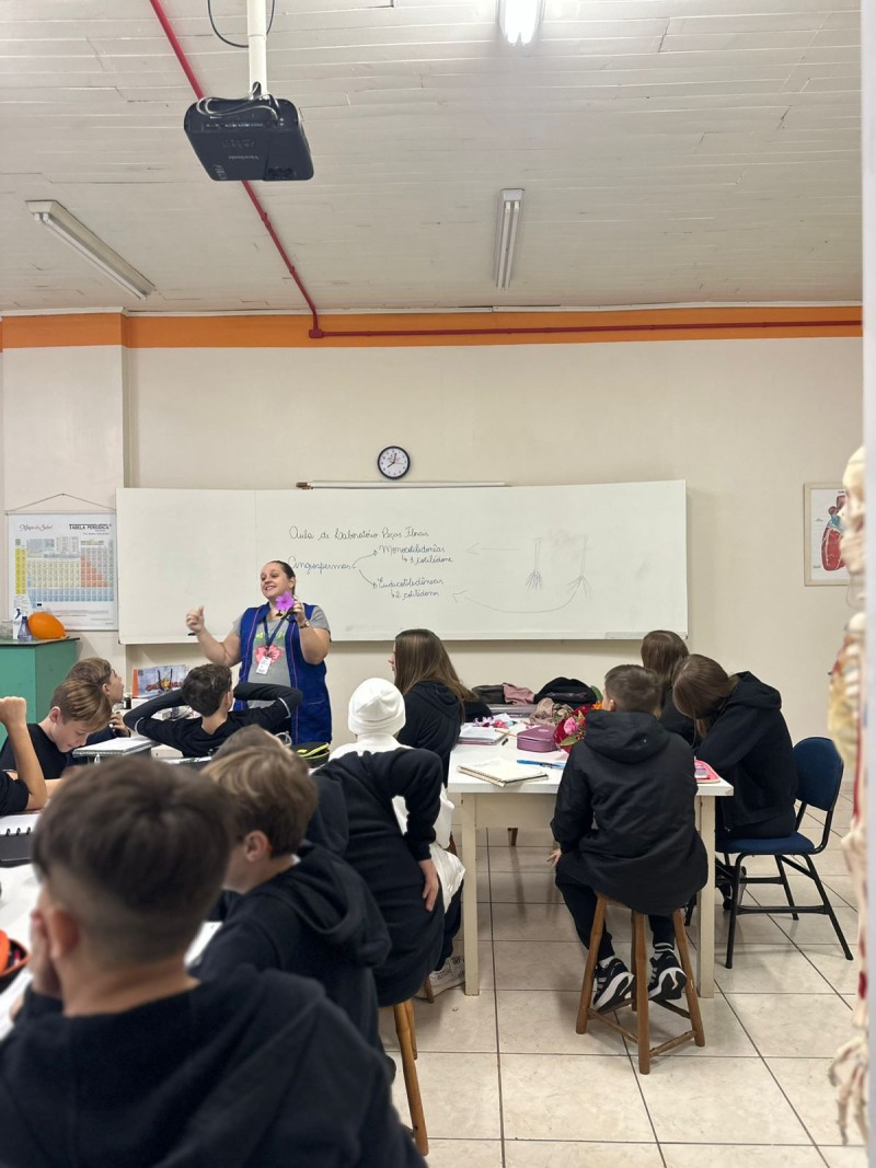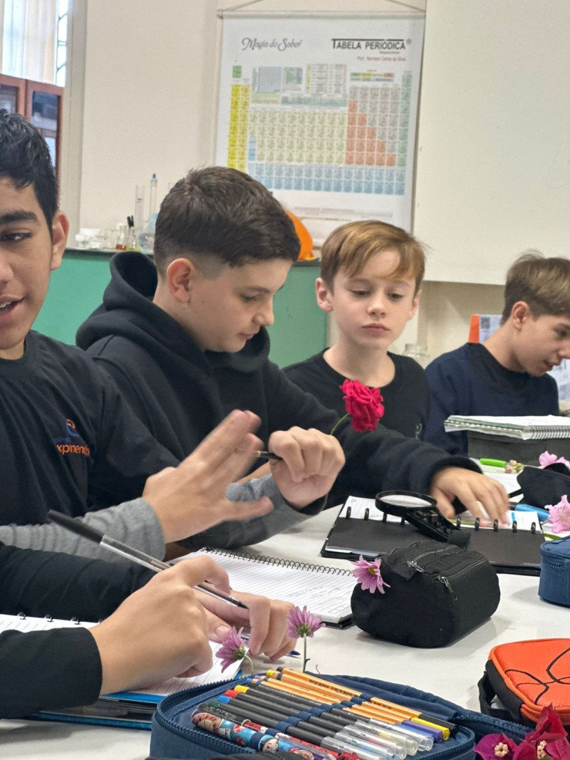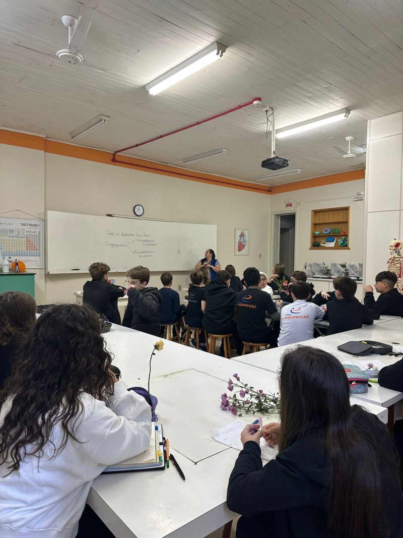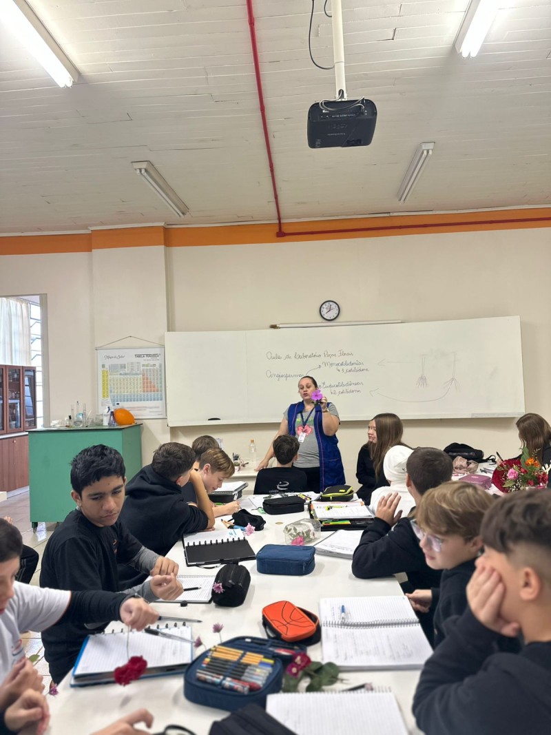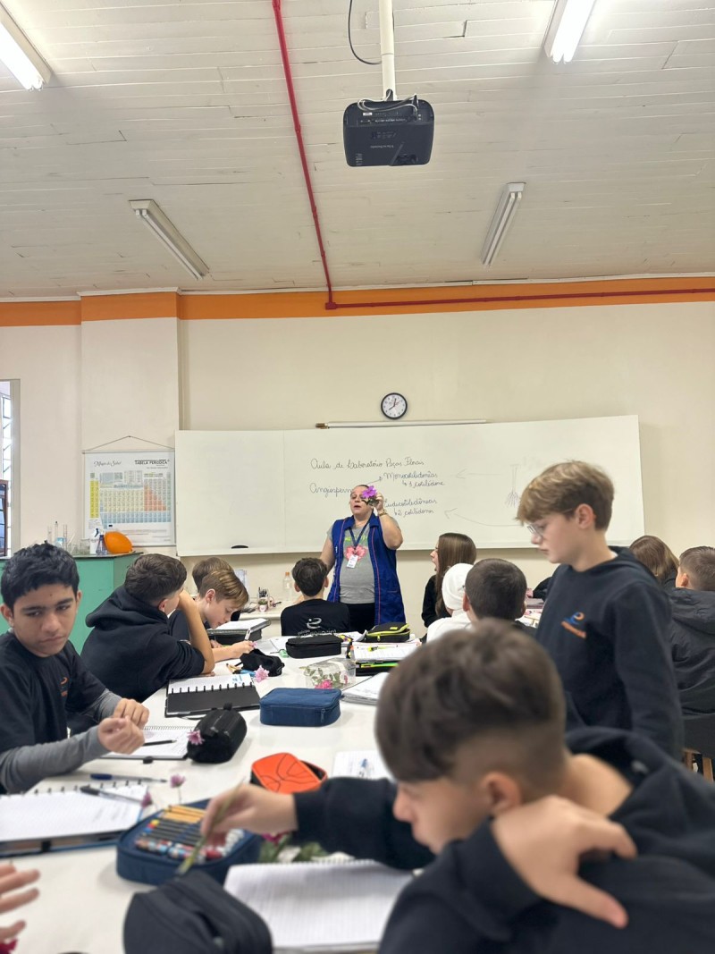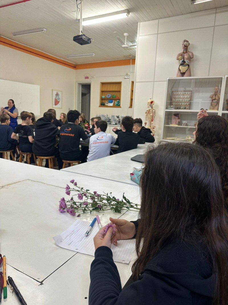 Aula Prática sobre Órgãos Reprodutivos e Vegetativos das Plantas, no laboratório de ciências, em parceria com os professores Adriana, Adrialdo e Denise. Nessa aula os alunos tiveram a oportunidade de explorar os órgãos reprodutivos e vegetativos das plantas. Eles trouxeram flores para a aula, o que permitiu uma interação direta com os temas abordados. Os professores concluíram que, a aula prática é fundamental para os estudantes vivenciarem e compreenderem de forma concreta as diferenças entre órgãos reprodutivos e vegetativos das plantas. A colaboração entre os professores Adriana, Adrialdo e Denise foi essencial para o sucesso da atividade, permitindo assim, a conexão entre teoria e prática, uma forma eficaz de aprendizagem.