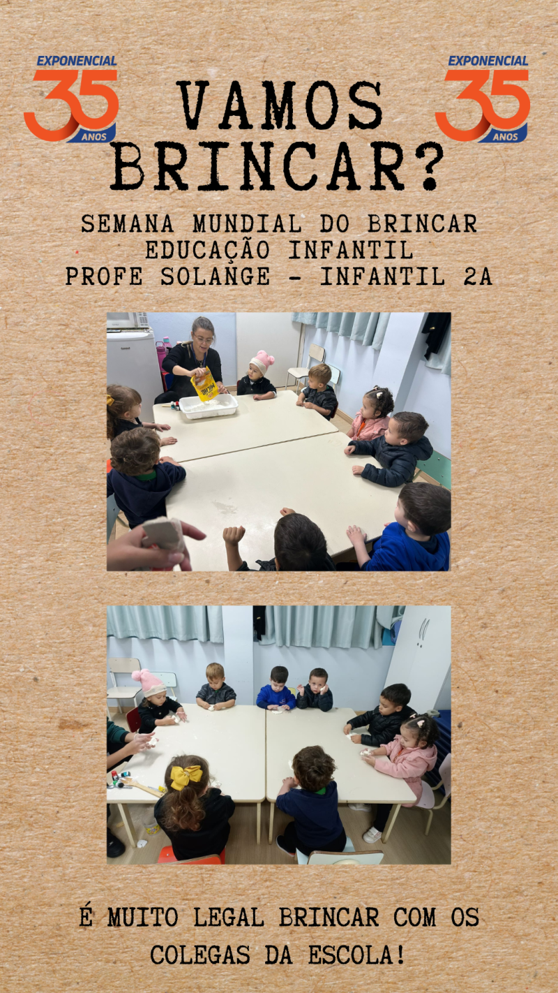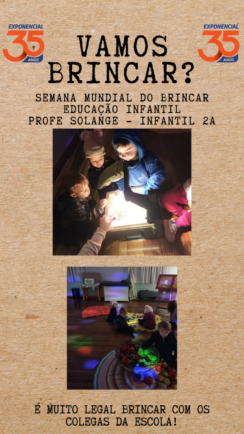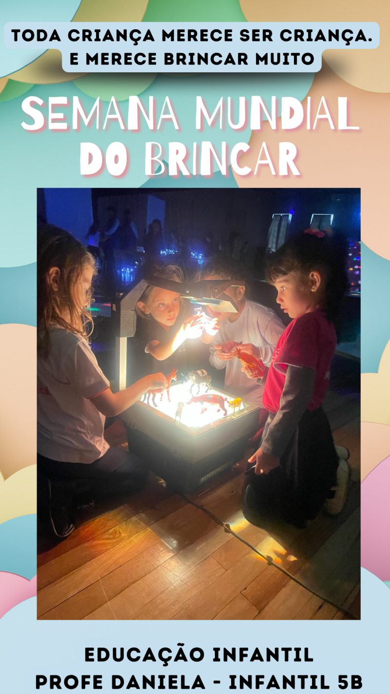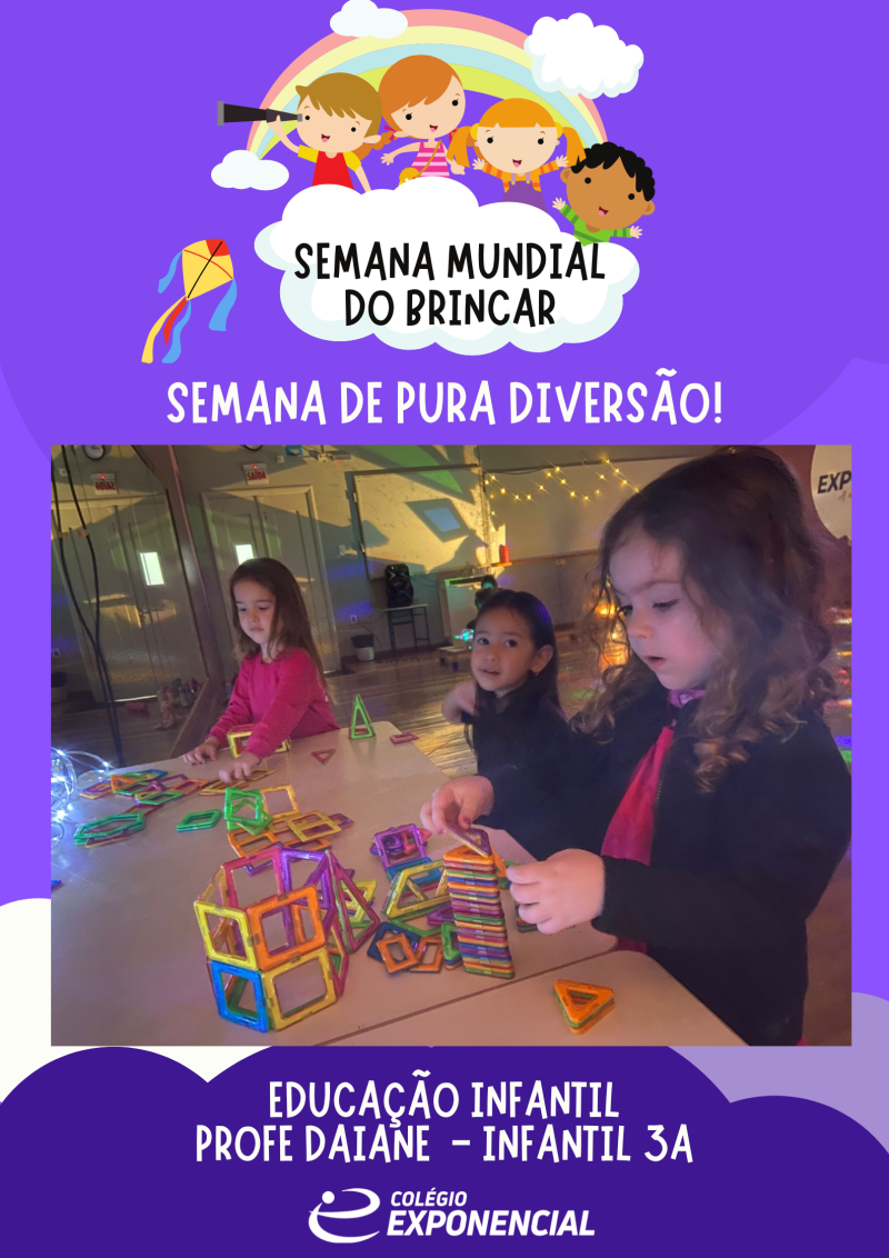 A Aliança pela infância fez um chamado à sociedade para reencantar seu olhar em relação às crianças, promovendo o brincar livre, o respeito ao tempo e aos ritmos das crianças, e a criação de ambientes acolhedores, essenciais para a infância plena e digna. Para isso, "Proteger o encantamento das infâncias" é o tema escolhido para nortear as ações da SEMANA MUNDIAL DO BRINCAR, de 26 de maio a 02 de junho. O Colégio Exponencial não poderia ficar de fora dessa, portanto, a semana será de muita brincadeira na Educação Infantil.