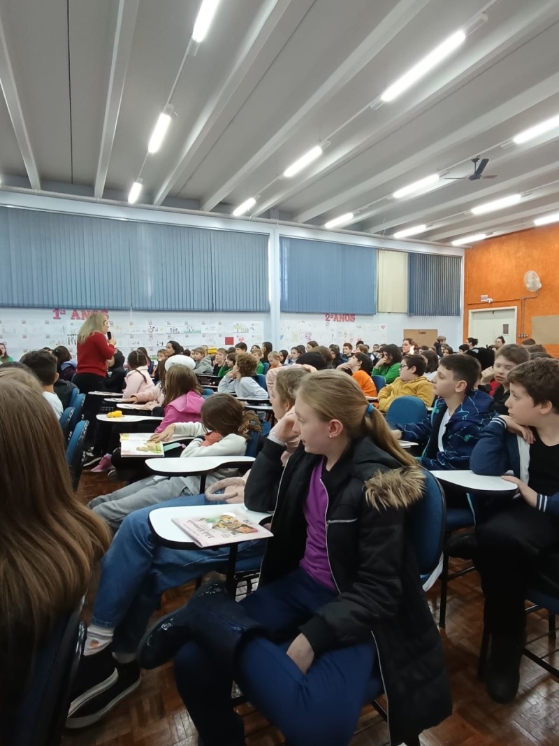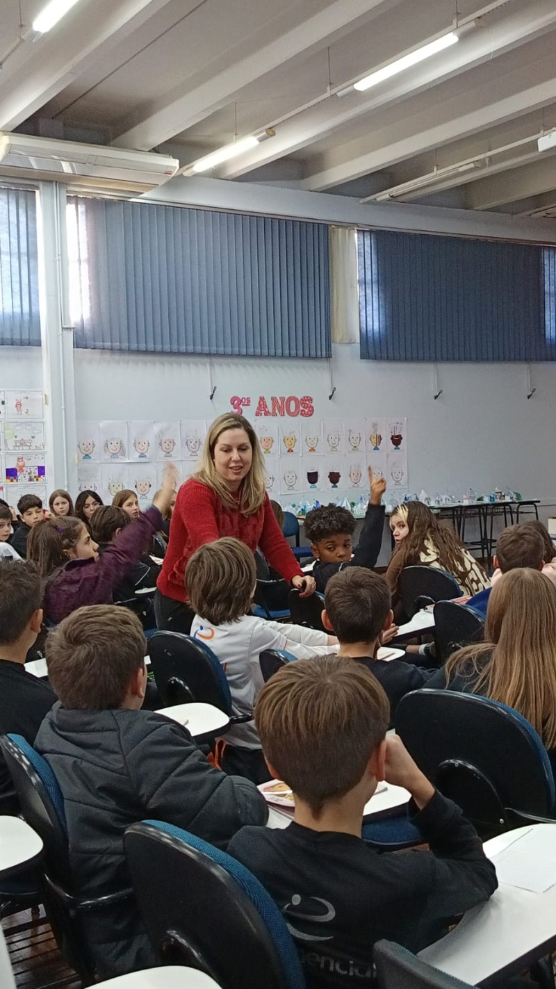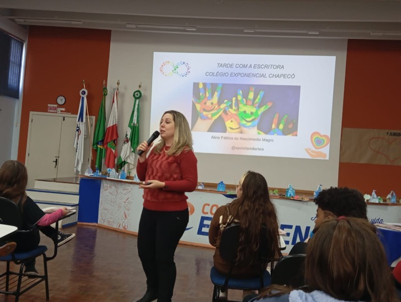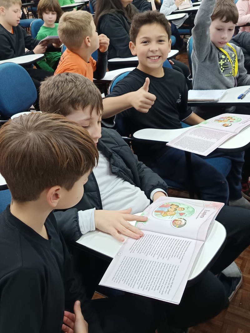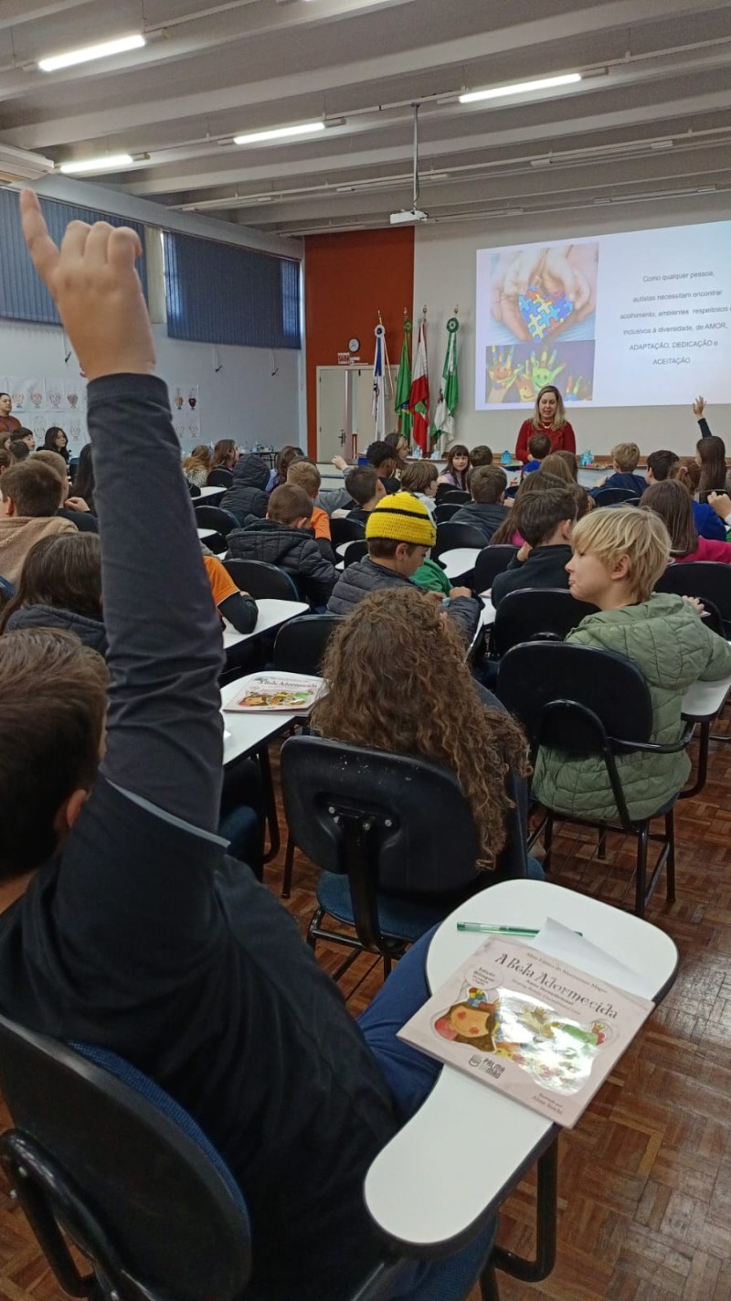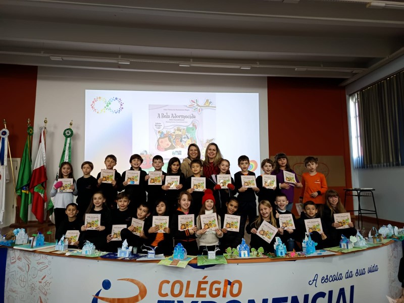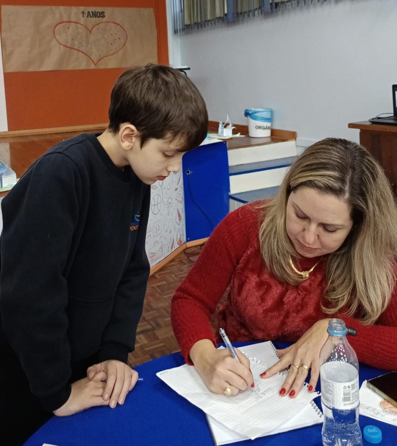 Em 13.06.25 ocorreu a 4ª fase do projeto da leitura. Sobre a obra A Bela Adormecida: Amor Incondicional (edição bilíngue – Português/Inglês), com a presença da autora Aline Fátima do Nascimento Magro. Natural de Santa Rosa/RS, ela reside em Chapecó/SC com a família há quinze anos, é servidora pública e doutora em Serviço Social. Aline transformou vivências e experiências da família numa obra de literatura infantil com viés do transtorno de espectro autista (TEA), fruto do aprendizado por meio do amor incondicional. A obra é literalmente o livro da sua vida e sempre terá um lugar especial no meu coração, pois teve inspiração na Natália, sua segunda filha, que foi diagnosticada com TEA aos três anos, sendo carregado por uma poderosa mensagem de amor que toca o coração de pequenos aos adultos. Fase essa que houve, abertura, acolhimento às professoras, crianças, e principalmente a escritora Aline, pela Coordenação Pedagógica Ivanir Lopes. Depois o diálogo da escritora com as crianças. Momento de autógrafos e para a fotografia da turma com a autora, e por fim, atividade dinâmica, onde cada criança deixou sua marca, representando que cada um é diferente, respeitando a diversidade, num coração cheio de digitais, e retomando o viés da obra, o amor incondicional!
