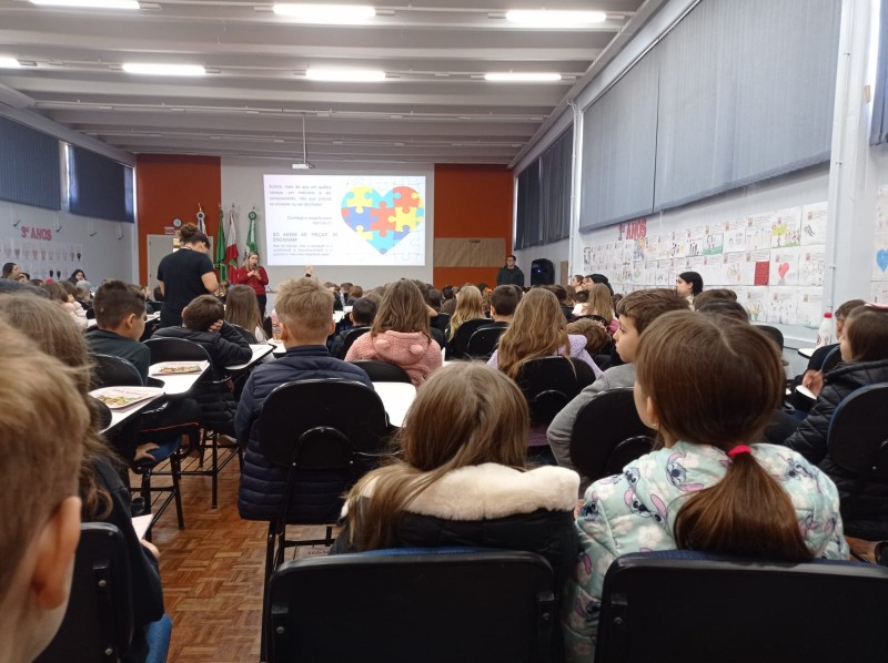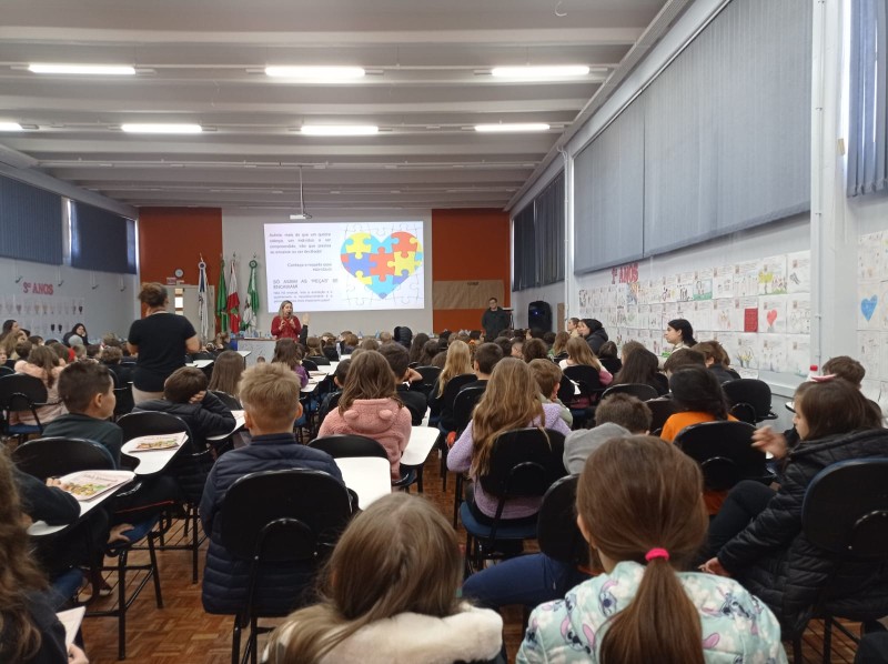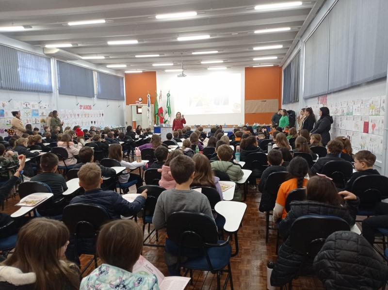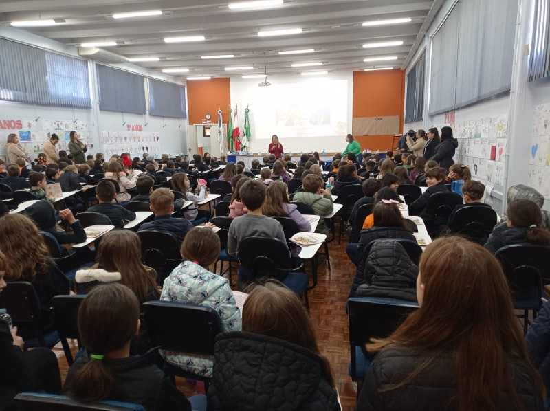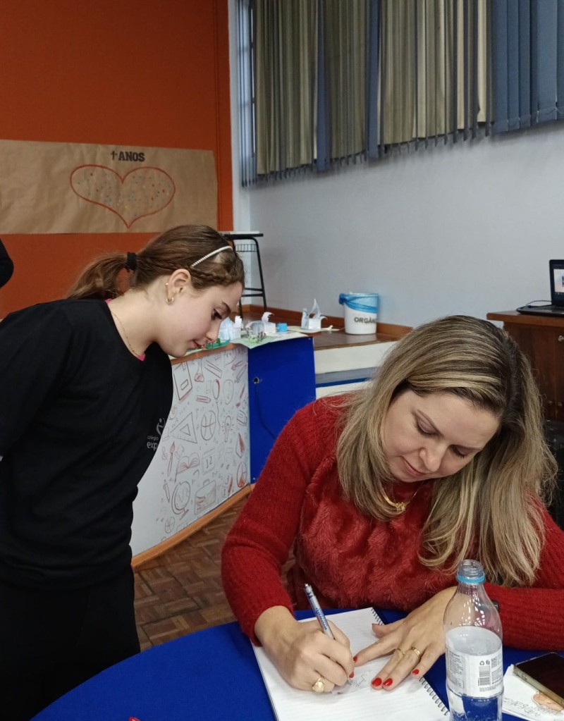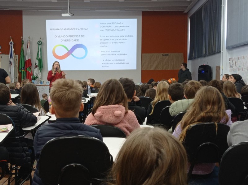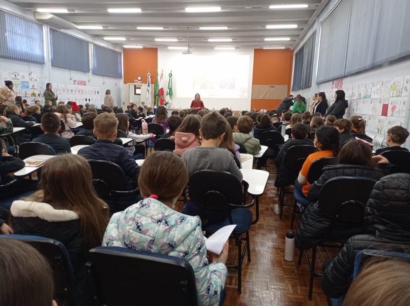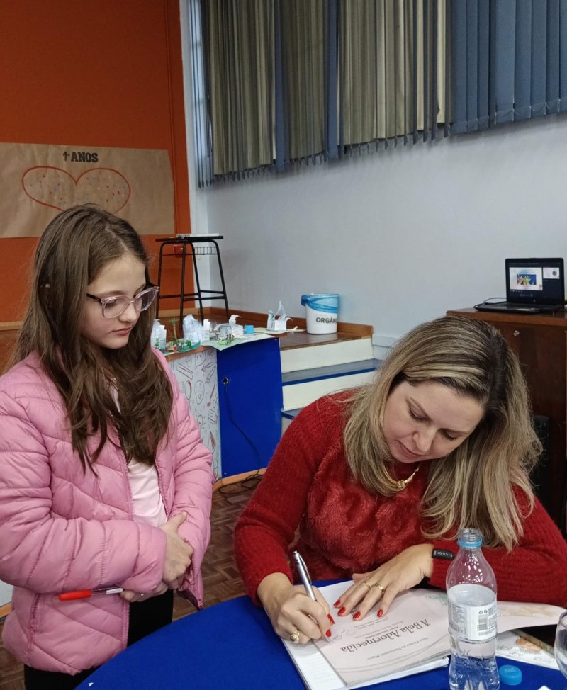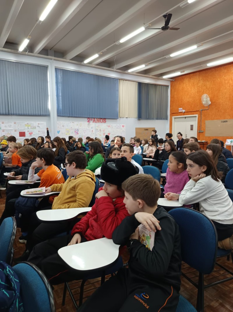 Em 13.06.25 ocorreu a 4ª fase do projeto da leitura. Sobre a obra A Bela Adormecida: Amor Incondicional (edição bilíngue – Português/Inglês), com a presença da autora Aline Fátima do Nascimento Magro. Natural de Santa Rosa/RS, ela reside em Chapecó/SC com a família há quinze anos, é servidora pública e doutora em Serviço Social. Aline transformou vivências e experiências da família numa obra de literatura infantil com viés do transtorno de espectro autista (TEA), fruto do aprendizado por meio do amor incondicional. A obra é literalmente o livro da sua vida e sempre terá um lugar especial no meu coração, pois teve inspiração na Natália, sua segunda filha, que foi diagnosticada com TEA aos três anos, sendo carregado por uma poderosa mensagem de amor que toca o coração de pequenos aos adultos. Fase essa que houve, abertura, acolhimento às professoras, crianças, e principalmente a escritora Aline, pela Coordenação Pedagógica Ivanir Lopes. Depois o diálogo da escritora com as crianças. Momento de autógrafos e para a fotografia da turma com a autora, e por fim, atividade dinâmica, onde cada criança deixou sua marca, representando que cada um é diferente, respeitando a diversidade, num coração cheio de digitais, e retomando o viés da obra, o amor incondicional!