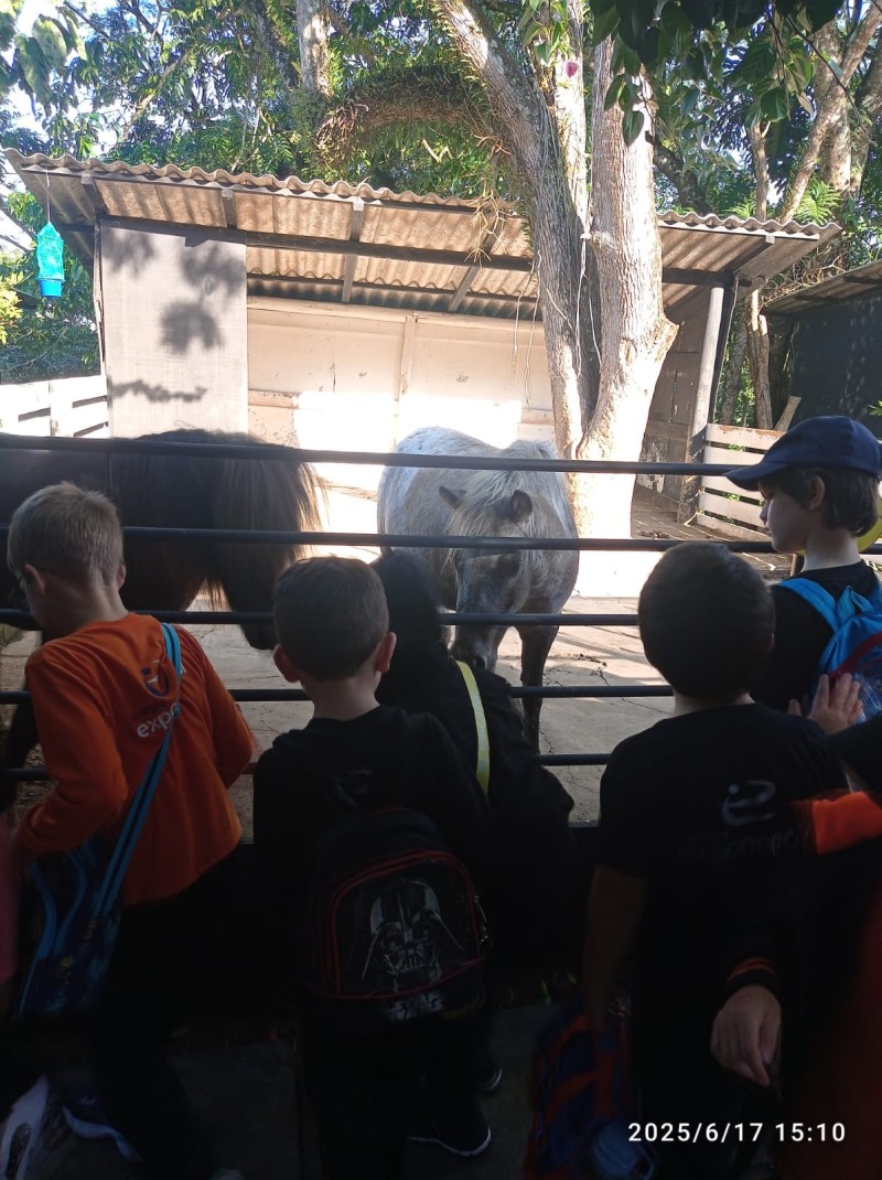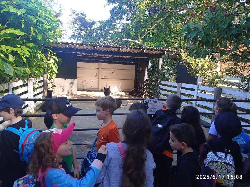 Os alunos dos primeiros anos, com suas professoras titulares e professoras auxiliares, em uma experiência incrível no passeio ao Mini Zoológico de Itá. Durante a visita, observaram de perto diferentes espécies de animais, ampliando seus conhecimentos sobre os seres vivos de forma lúdica e significativa. Foi um momento de muita curiosidade, encantamento e aprendizado, contribuindo para o desenvolvimento da consciência ambiental e do respeito à vida.