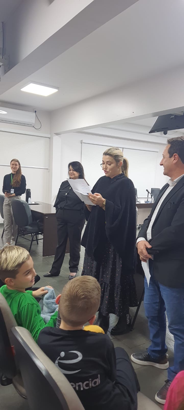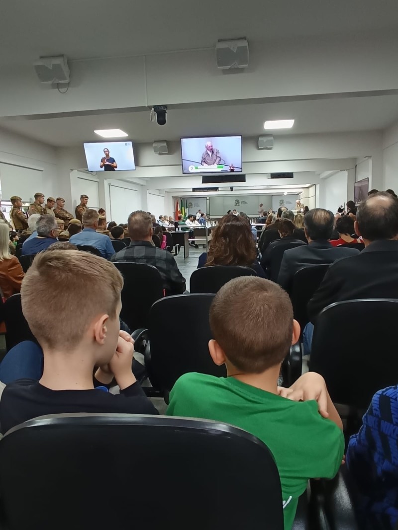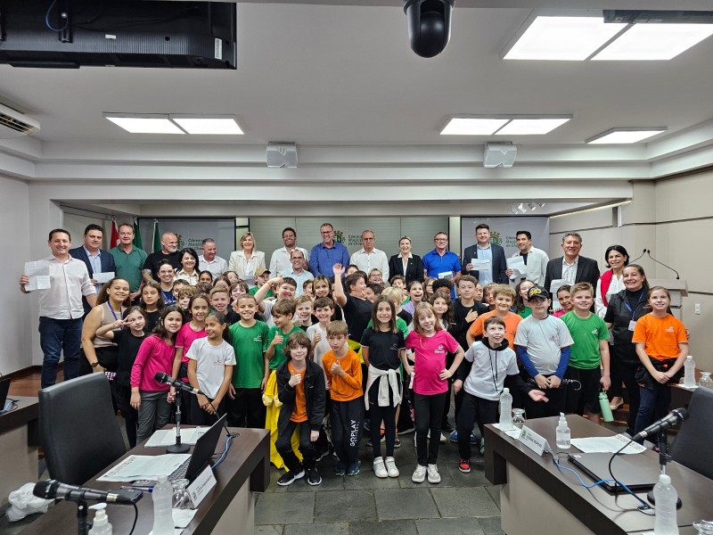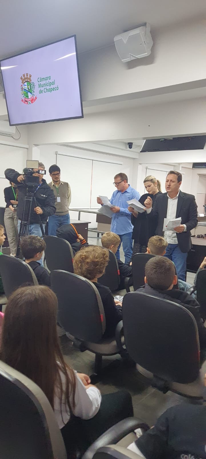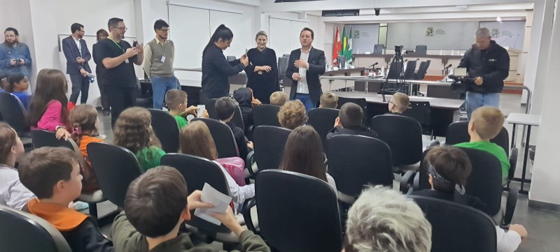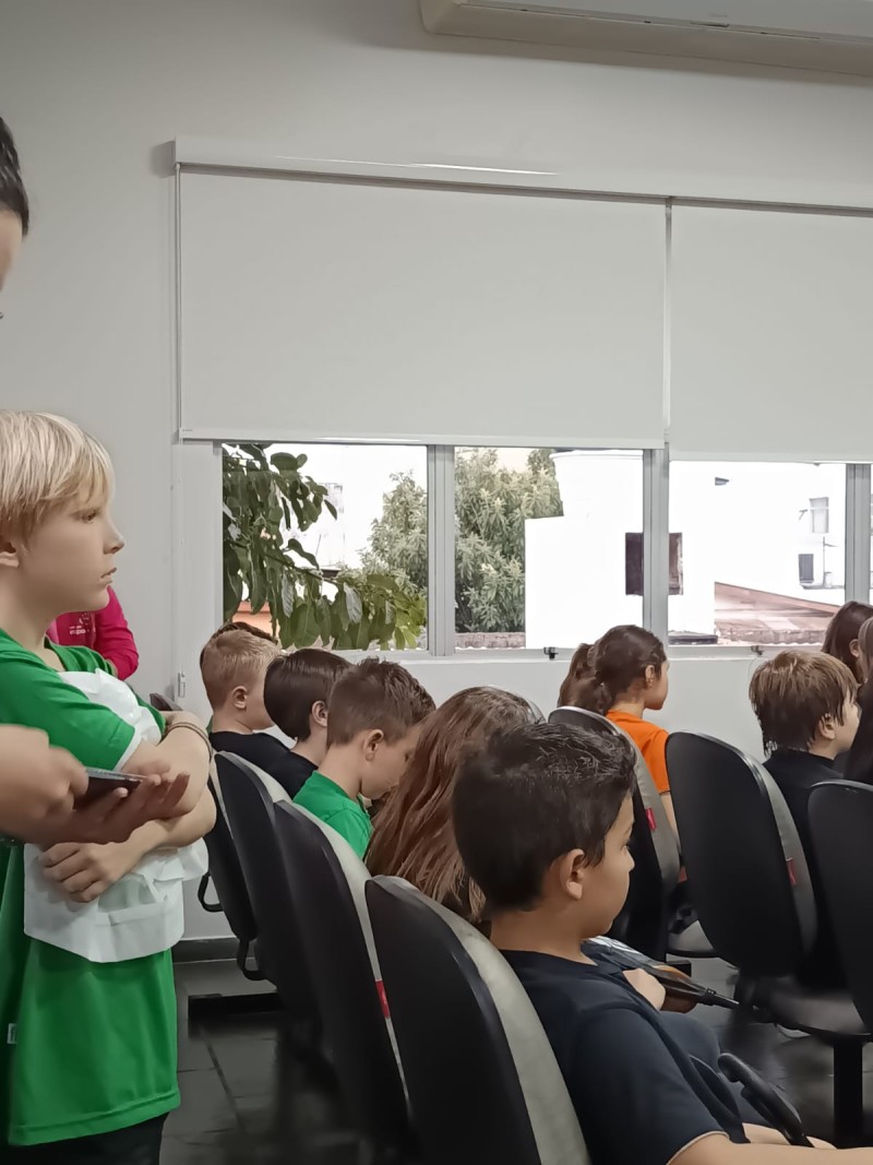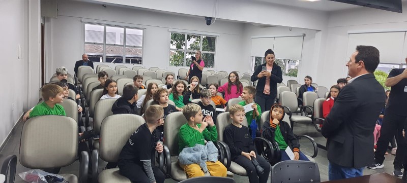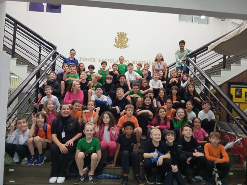 Estudantes dos 4º anos - turmas 41,42 e 43 - acompanhados das professoras titulares Sara, Keli e Heidi, visitaram e participaram de uma sessão na Câmara dos Vereadores de Chapecó. Eles estudaram em História o conteúdo sobre as divisões de poderes público: executivo, legislativo e judiciário. Em Língua Portuguesa, eles estudaram o gênero textual "carta de reclamação" e com os estudos sobre o papel dos vereadores, buscaram situações no município em que seria necessário intervenção e melhoria, Produziram as cartas para eles, com o objetivo de mudanças positivas a partir das queixas relatadas.