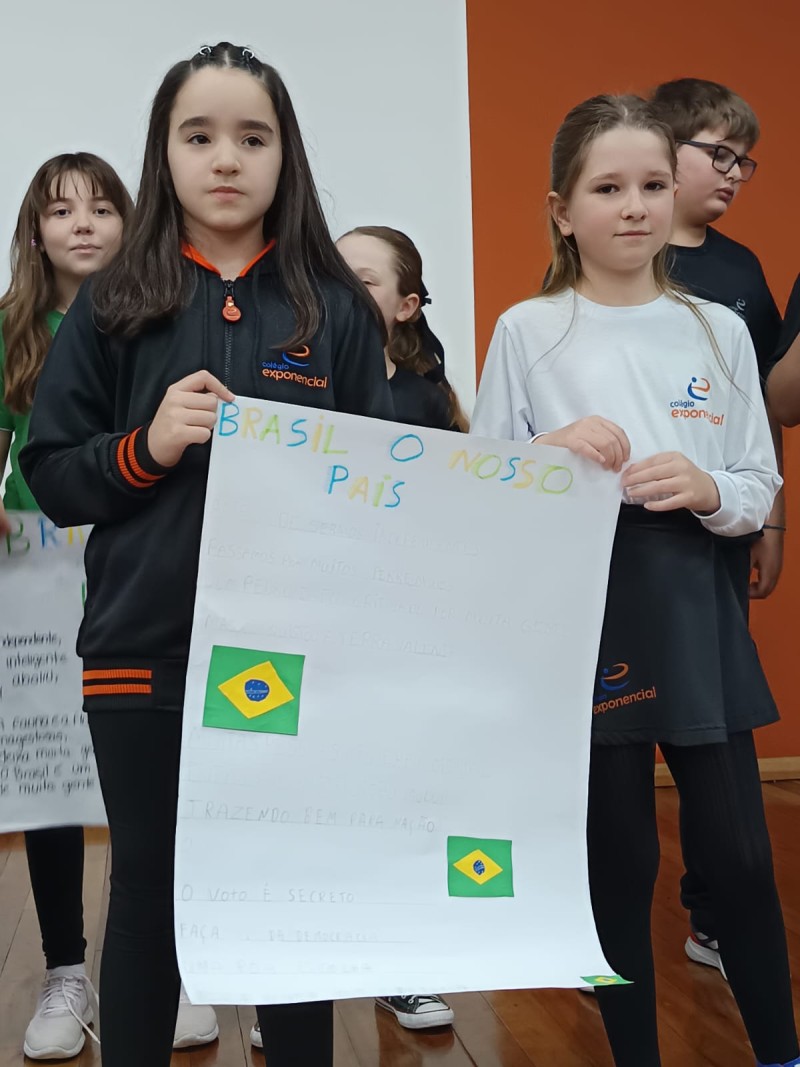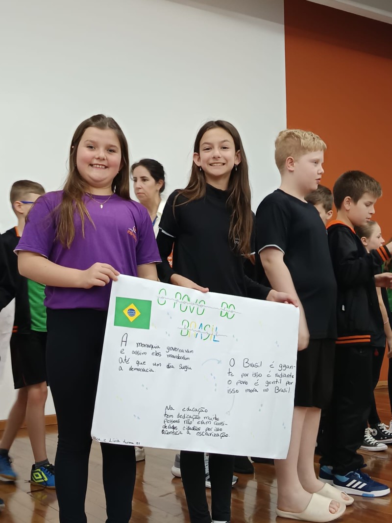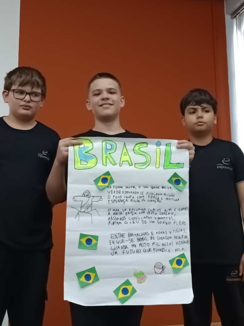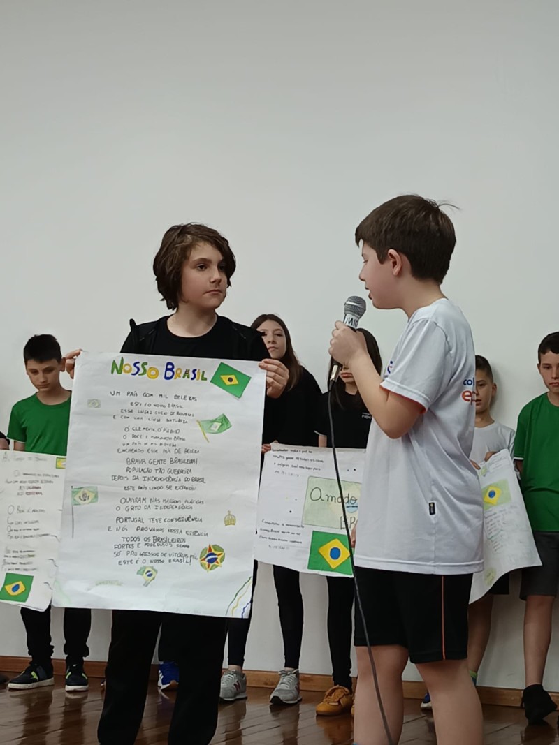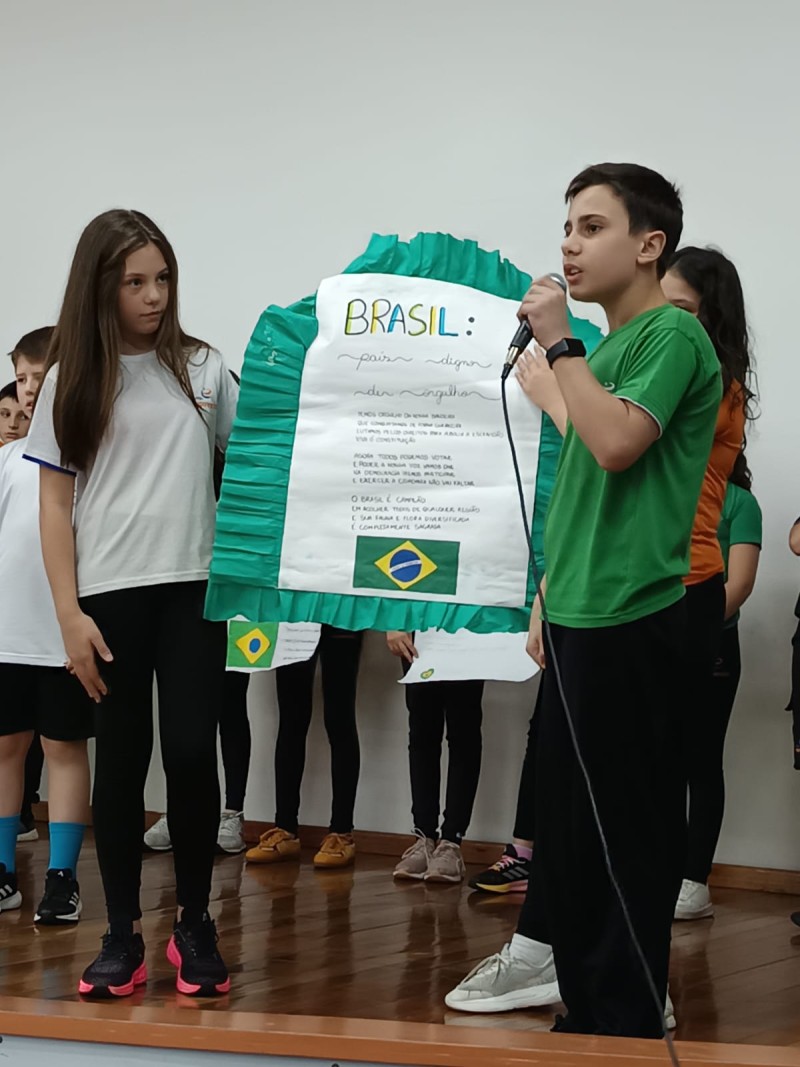 Em 1º de setembro, alunos dos 4º e 5º anos do EF1 realizaram abertura da Semana da Pátria. A Semana da Pátria proporciona um espaço para que os estudantes aprendam e internalizem valores como cidadania, respeito e patriotismo, moldando-os como adultos responsáveis que compreendem a história do Brasil, valorizam a independência e a cultura nacional, e sentem-se parte de uma pátria coletiva. Ela fortalece o civismo e o patriotismo, ensina sobre a importância dos símbolos nacionais e da diversidade brasileira, e estimula o respeito e o senso de união entre os alunos, preparando-os para construir um futuro melhor para o país.