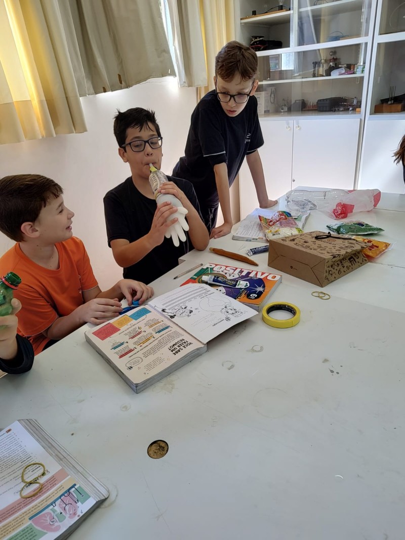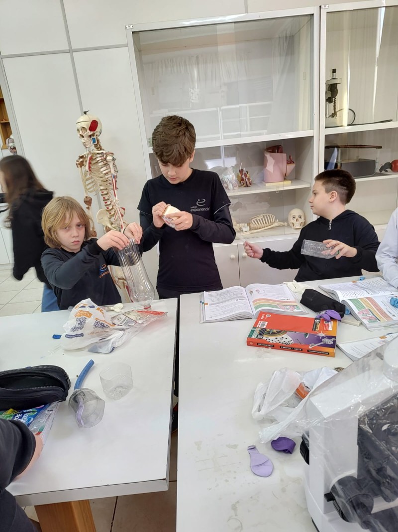 Aula prática Laboratório de Ciências - Professora: Adriana - Atividade realizada com a turma 61: Como Funcionam os Pulmões? O objetivo deste experimento foi demonstrar, de forma prática e visual, como funciona o sistema respiratório humano, em especial os pulmões e o diafragma, utilizando materiais simples. A atividade ajudou a entender como o ar entra e sai dos pulmões com base na variação de pressão causada pelo movimento do diafragma.