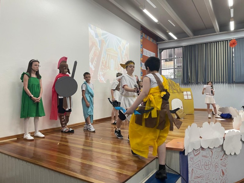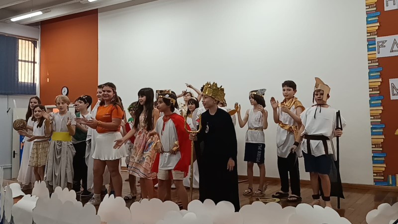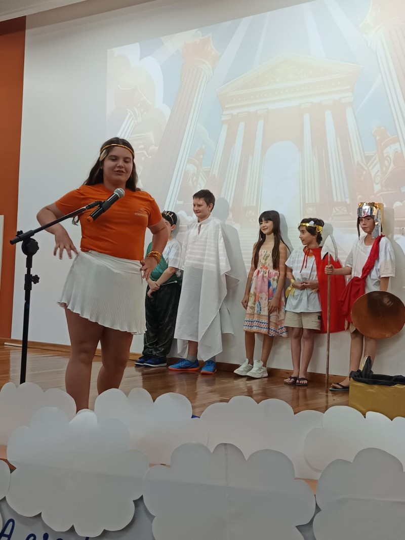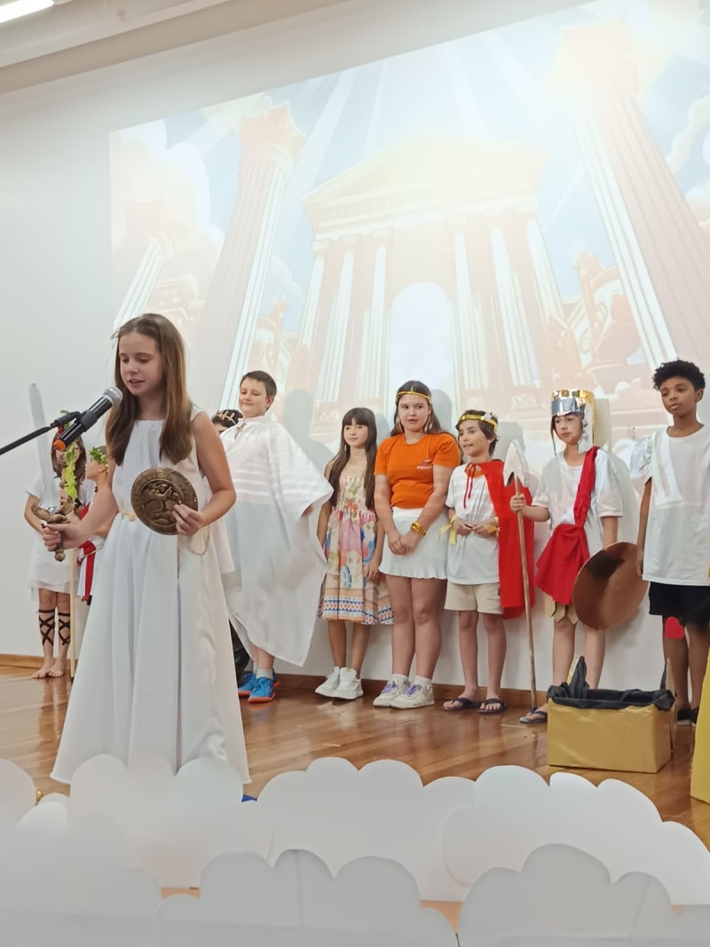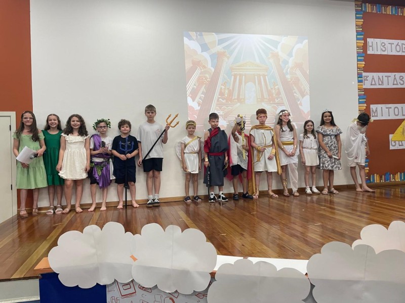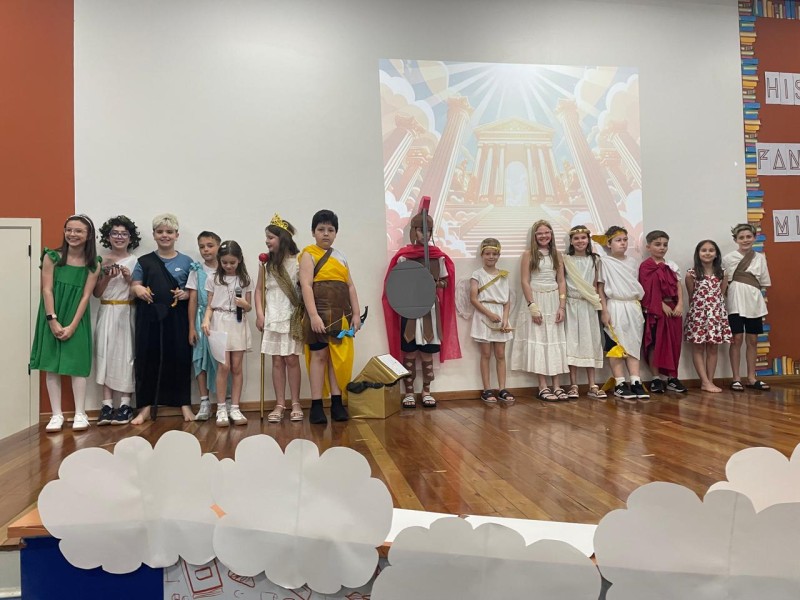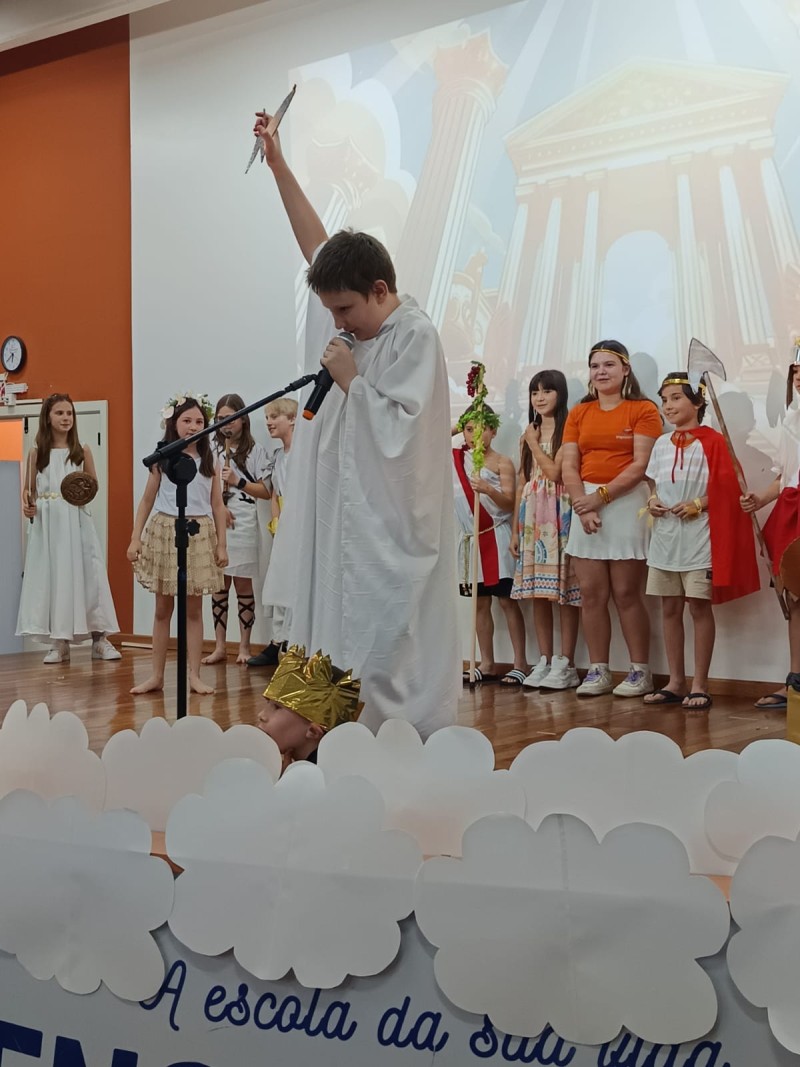 Com base em várias obras literárias infantis sobre mitologia grega, professoras conduziram as crianças dos 4º anos em produções para o palco, confecções de bonecos, exposição de trabalhos, tudo para tornar a Noite Literária um evento de sucesso, tal como foi! Além das apresentações das crianças, o Expo apresentou o vídeo de retrospectiva das atividades do ano das crianças, para encerrar mais um ano letivo com chave de ouro. Muita criatividade, risos, beleza das apresentações fizeram parte de mais um evento com a participação das famílias.